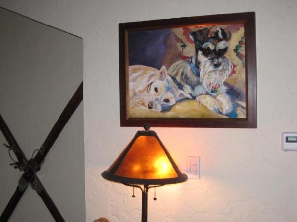 “Schnauzers”, 18×25 acrylic on canvas, a commissioned pet portrait